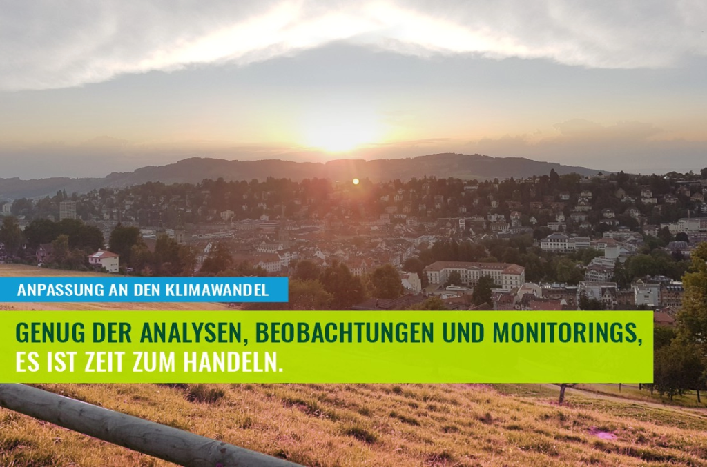 Im vorliegenden Bericht fehlen griffige Massnahmen, um die in der Analyse beschriebenen Handlungsfelder auch anzugehen. Die vorgeschlagenen Massnahmen beschränken sich mehrheitlich auf Monitoring, Beobachtung, Analyse und Information. Doch so kann den Folgen des Klimawandels nicht begegnet werden.